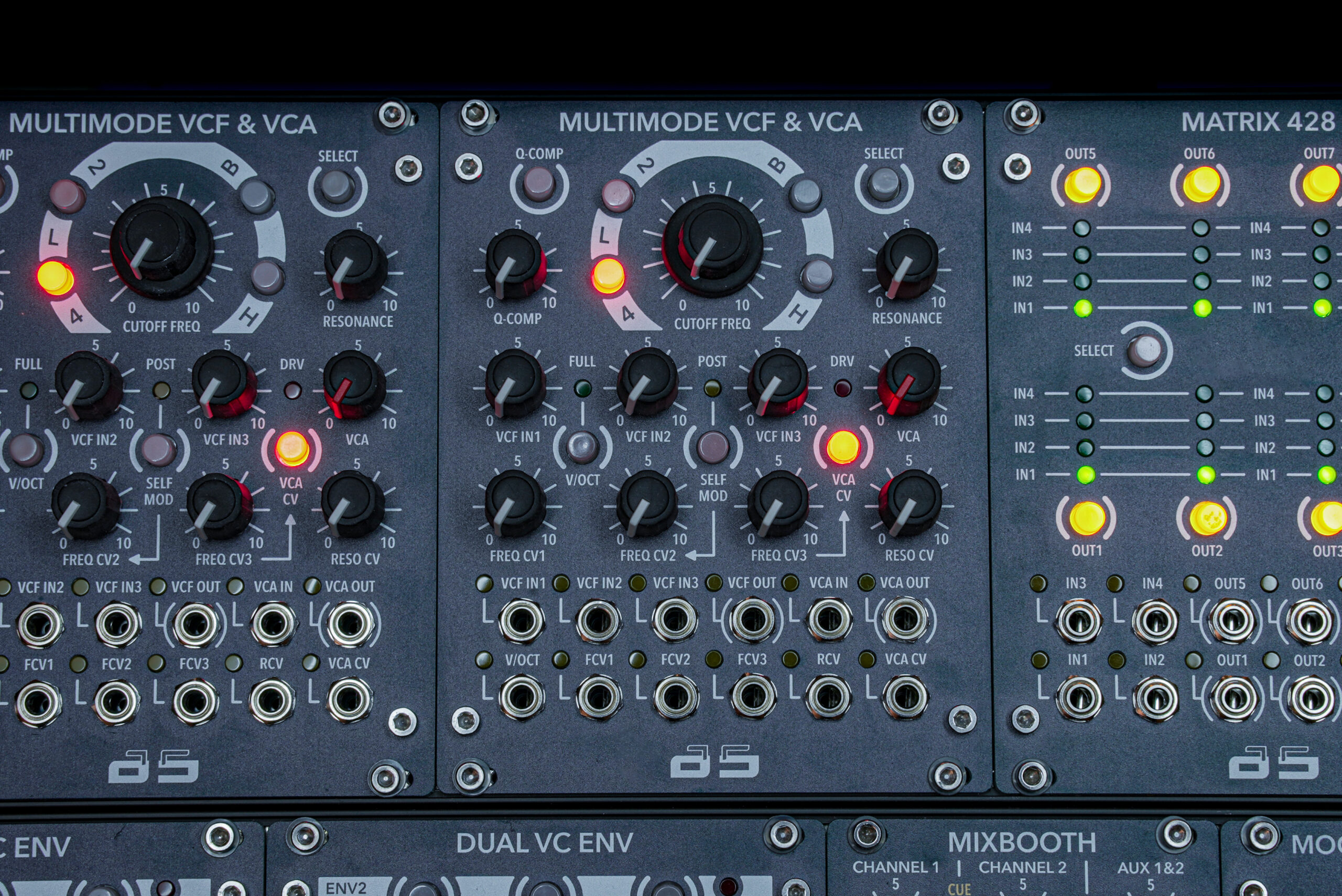 The module provides separate outputs for the VCF, as well as both input and output for the VCA.